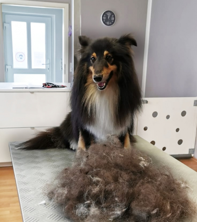 Mit Hilfe eines Spezialshampoos wird ihr Hund gewaschen und anschließend gründlich aus gekämmt und geföhnt. Für einige Zeit werden sie eine große Reduzierung der Haare rund um den Hund merken.